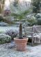 The seed of the Frosty is taken from specially selected mother plants. Cultivated in Northern Europe, the Frosty is very resistant against most winters, making them one of the most ideal palms for outside in your garden. They have been hardened already and will continue to grow well in your garden. well in your garden. As they are not grown in a clay clump, they will root better and faster, making them more suited against our winters.